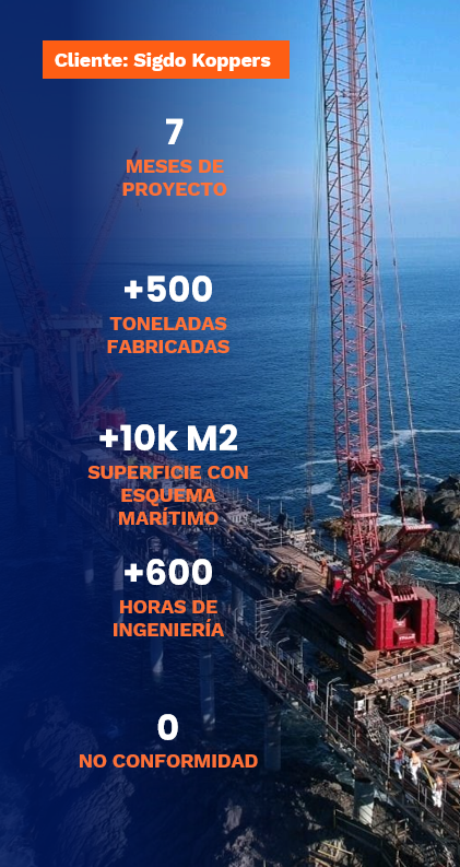 La participación de Grupo Vanor se distinguió por su capacidad de integrar ingeniería, montaje industrial y control de calidad (QA/QC), asegurando la trazabilidad de los procesos y la entrega dentro de los plazos establecidos. Se aplicaron metodologías de trabajo seguro en ambientes costeros de alta exigencia, garantizando eficiencia en maniobras de izaje y en el ensamblaje de estructuras críticas. Gracias a este proyecto, Grupo Vanor consolidó su experiencia en infraestructura portuaria y minera, posicionándose como un aliado estratégico en la ejecución de obras industriales de gran escala en Chile.